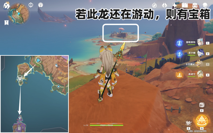 若还没解锁海岛传送点,有解密可以直接抵达(也可自己跨海)。