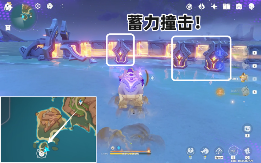 附雷龙靠近龙像,随后冲撞解锁三个点。