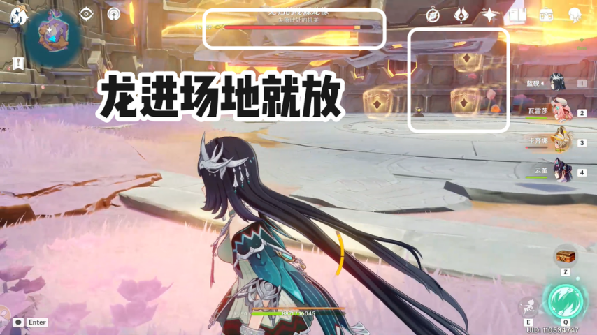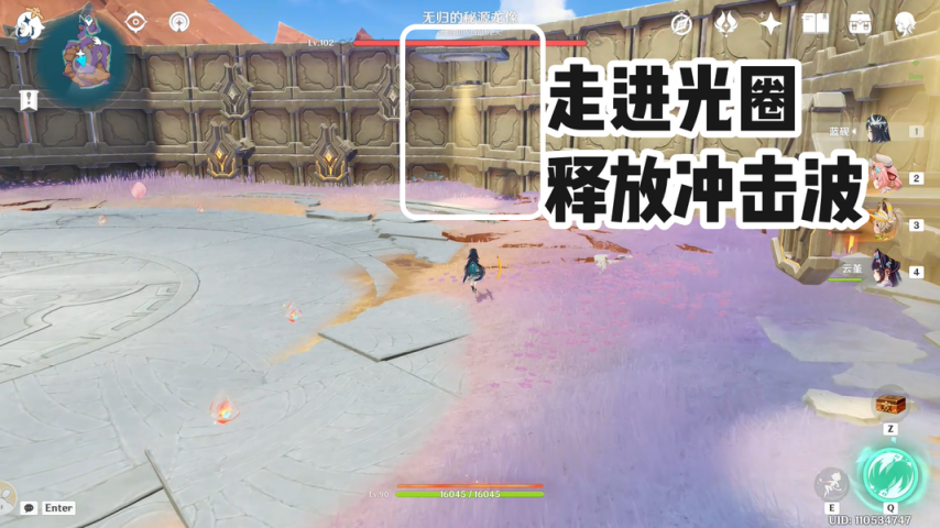 具体是等「秘源龙像」下降到场地后,进圈→释放冲击波攻击→出圈。