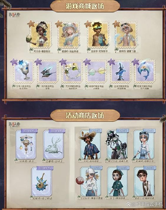 时装返场:勘探员 “盛夏飞盘”、咒术师 “榔香假日”、调酒师 “海盐特调” 等夏日主题时装,守夜人 “绝影”、佣兵 “海岸花环” 等随身物品重返商城。