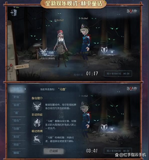 可选 “马鹿”“狐狸”“獾”“雪兔” 等动物身份,各有独特技能(如 “马鹿” 移动速度 + 20%,“狐狸” 蹄角可攻击)。