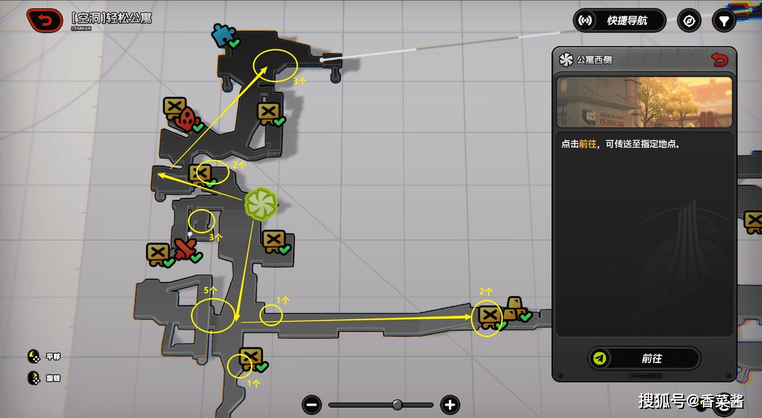 ①最富足的路线。轻松公寓-公寓西侧,都不用打怪,一共17个,有1-2个可能会进战斗。