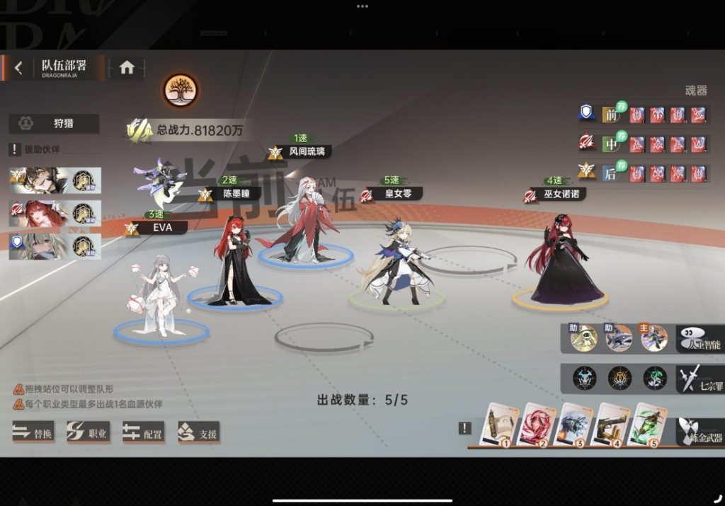 己方全体添加【全伤害上升】对于狩猎pve之中提升是效果很显著的。