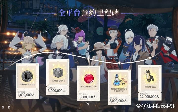 公测上线后玩家可以在邮箱领取预约奖励:卢诺(绑定)×125000、初级星拓箱×2、蔷薇宝石(绑定)×480、独家定制发型呆毛×1、生体重构剂×1、骑行犬·密云(尚未解锁);