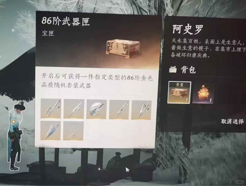 今天更新了凉州新地图,图片中的NPC可以通过摄星拿月可以获取一件86级金武器,具体位置见图,不过流派是随机的。
