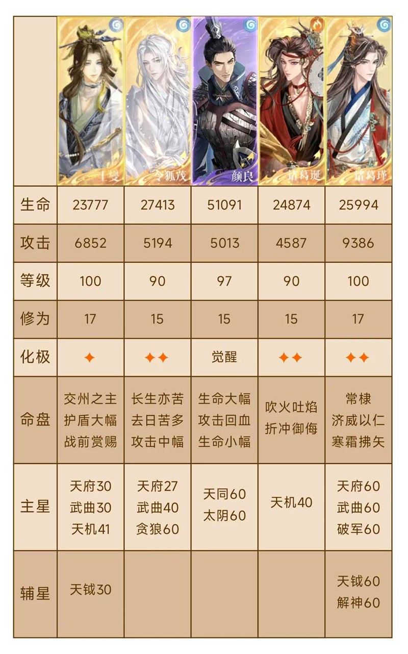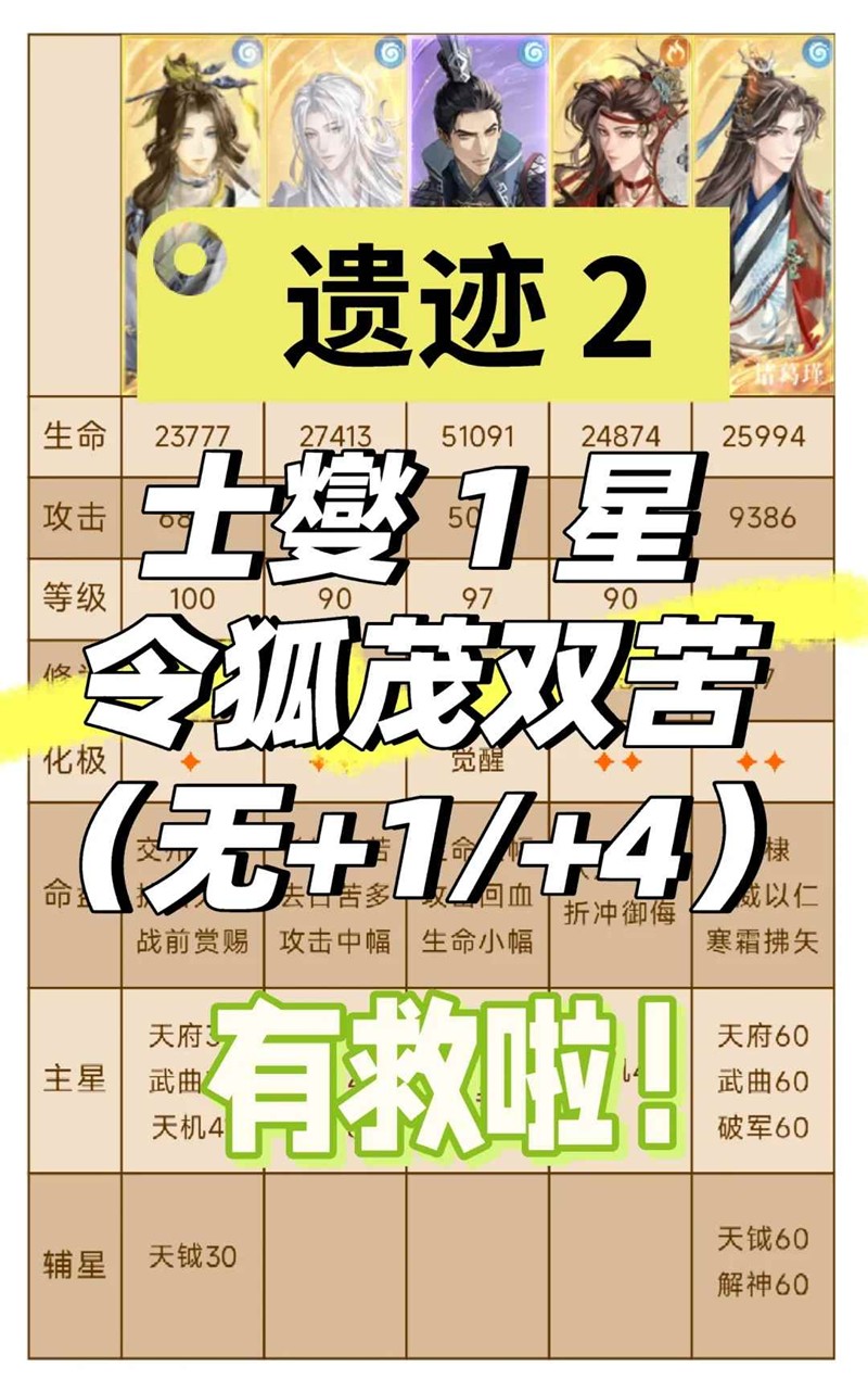 ps:士燮可以换董奉,令狐茂可以换刘豹(王兄我试过,伤害差一点打不完第一条命,后面还有密探退场的问题,不是很顺手),总之,因为有了逃课机制,阵容变得灵活了许多!士燮没有完美命盘也可以,可以看到我因为盾反伤害太高反而不得不下调了星石等级,可以根据具体情况灵活下拉/平A