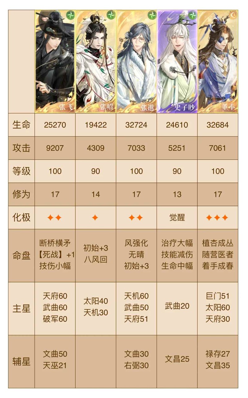 优化了一下表格,黄框回合都打陈登普攻队练度一般,叠星不高,张飞站不住的可以下拉几回合