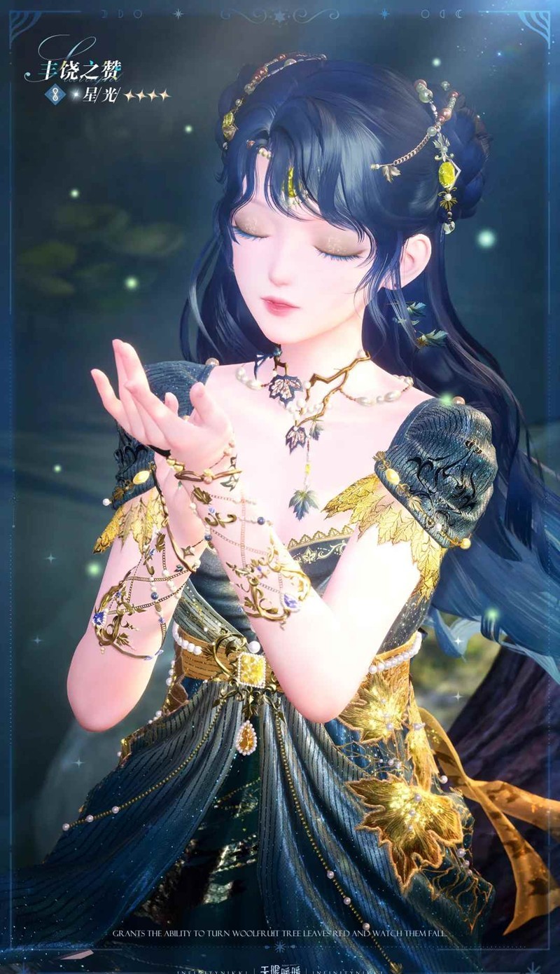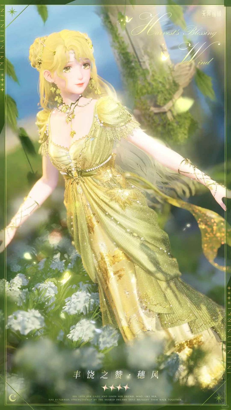 *图片部分妆容仅供参考,服装实际效果以游戏内为准「丰饶之赞」进化后为套装「丰饶之赞·星光」。套装焕新完成后可获得「丰饶之赞·穗风」。