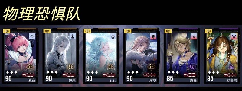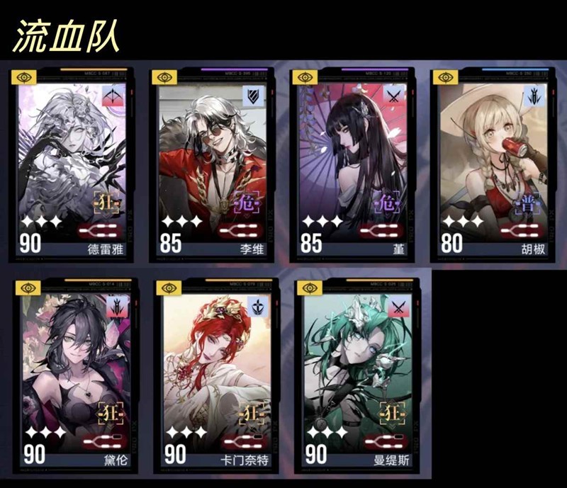 流血队(物理)目前版本上场机会不如破绽队了,核心的四个角色都得养。流血队的缺陷就是清杂能力较弱且德雷雅专烙只能开两次。