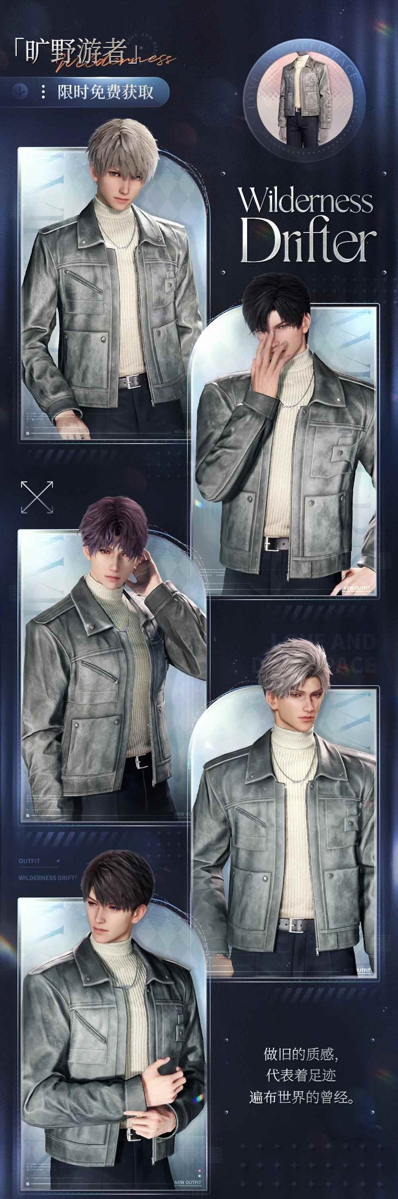 探秘进程:1000钻&男主通用服装免费领!完成全部探秘进程,即可免费领取「钻石*1000」、男主通用服装「无尽原野」「旷野游者」及丰富培养道具奖励!*活动期间可免费获取全部限定奖励,无需额外购买。