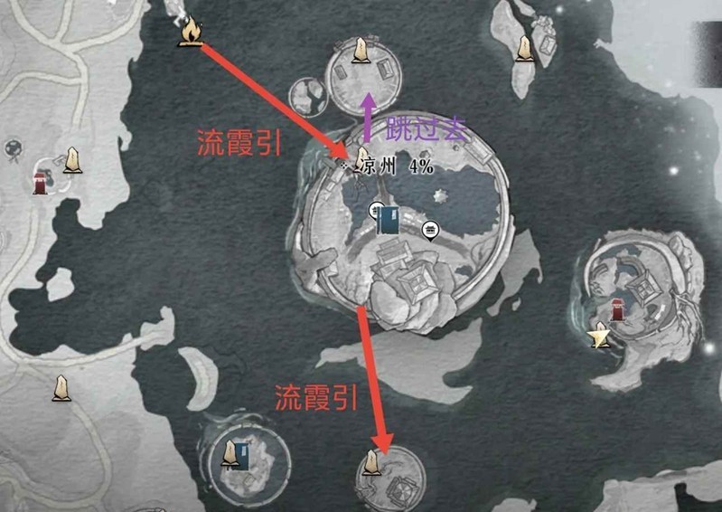 【天水集、曹府、无垢塔界碑】放大地图可以看到【流霞引】,流霞引之间有路线,点击流霞引可以化鳞起飞。