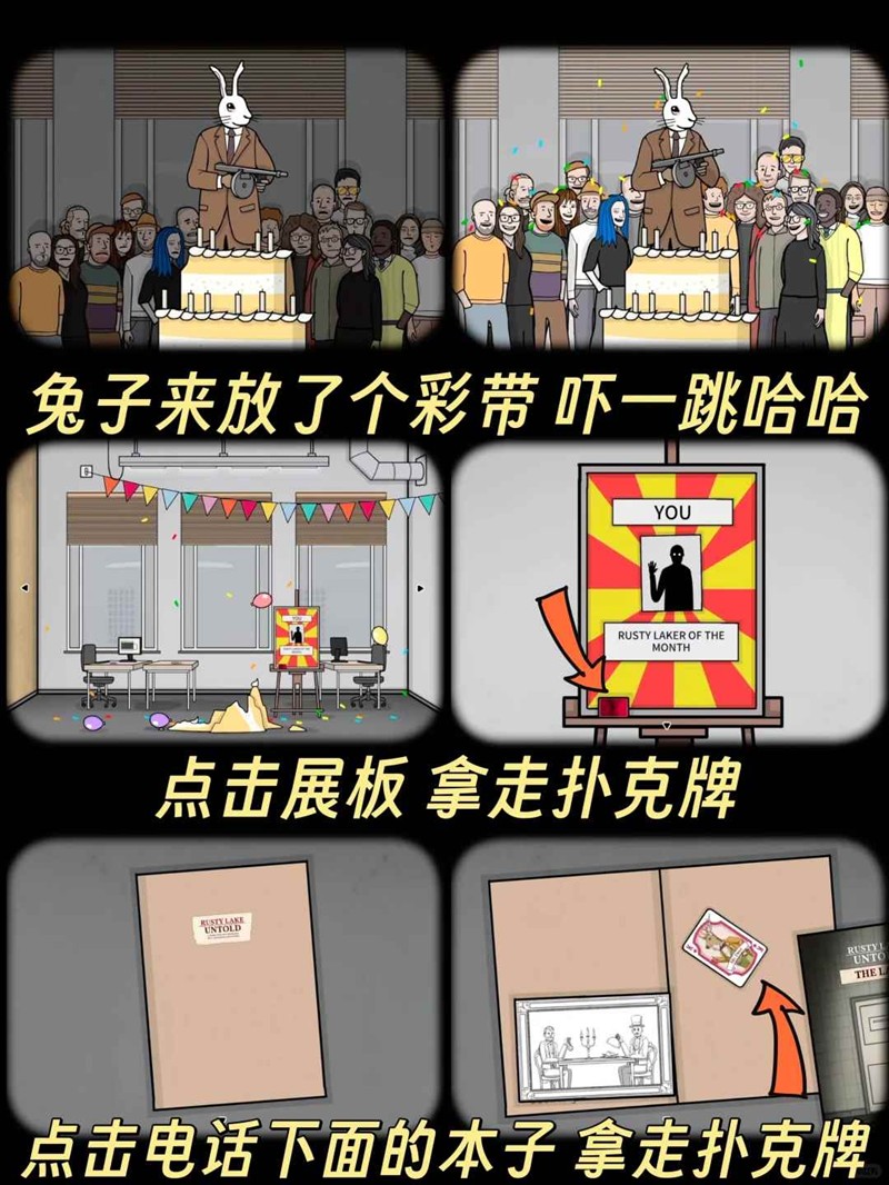 锈湖Rusty Lake十周年免费新作《兔子先生的魔术秀》(The Mr. Rabbit Magic Show)现已免费上线Steam/itch.io/iOS/Android。这款魔幻短篇游戏藏着无数秘密与随之而来的转折,将你带入诡异的庆祝气氛中。经历20个荒诞又坐怪奇的魔术桥段,处处挑战你对「常规」的理解。看起来不太劲?也许……它本来就不对劲。那么游戏中全成就扑克牌应该怎么收集呢?一起来和看看吧~
