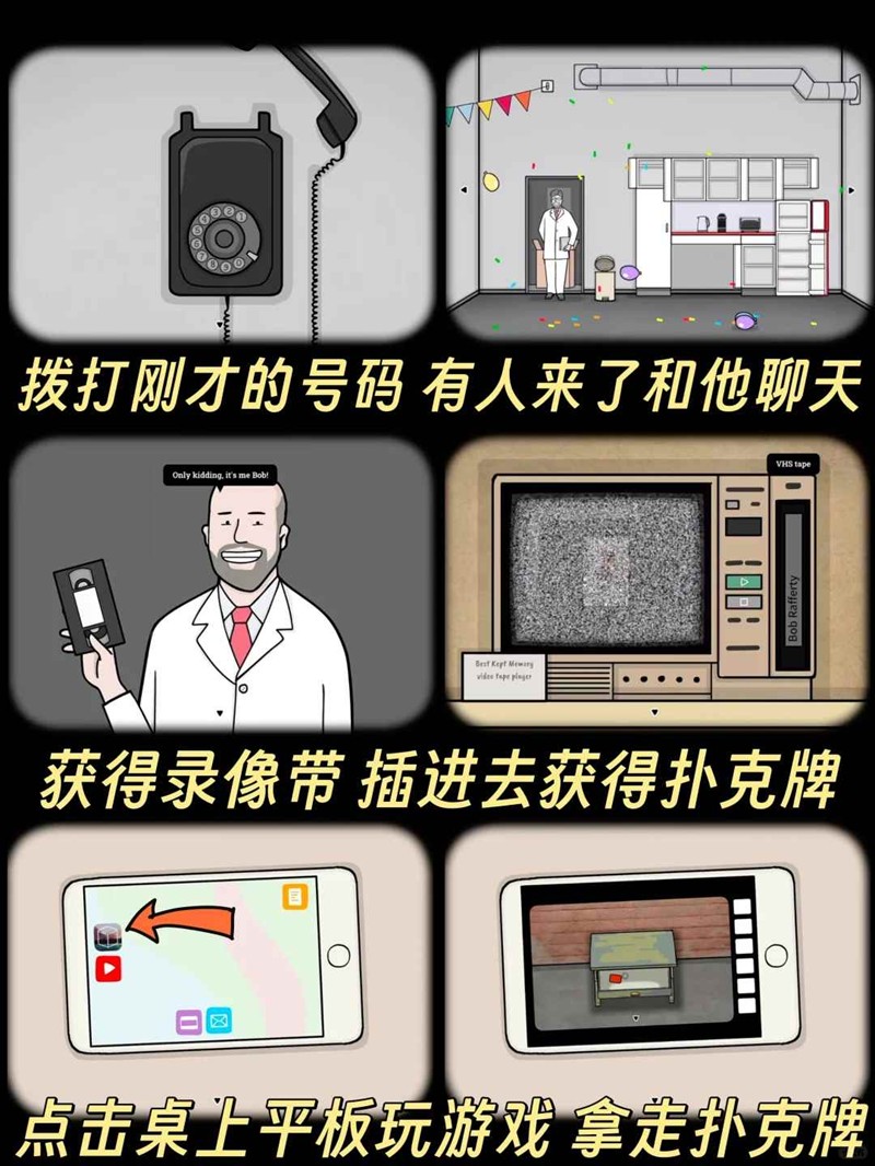 大小王(2张)小王:庆祝活动后,中间办公桌电话拨打指定号码,茶水间互动拿录像带,录像机播放获取。大王:电脑场景点击平板,通过邮件得知保险箱位置(门左侧画框后),密码「7258」对应黄色柜子物品顺序(古董钟→黑方块→乌鸦面具→录像机),按「第二行左→第三行中→第二行中→第四行左」点击密码锁打开即可获得。