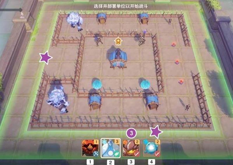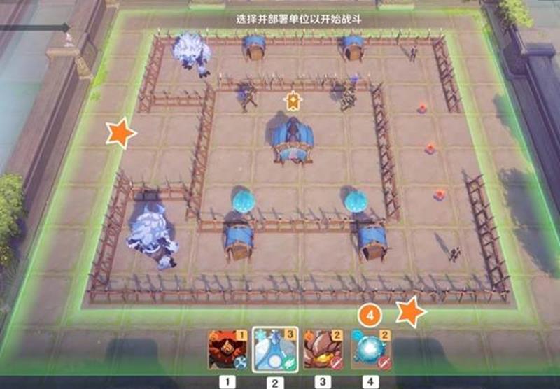 压制特化型机关应对策略本关核心难点在于中央区域的压制特化型机关,建议优先集火解决该目标。开场时立即在战场左下角部署两只飘浮灵,利用其远程特性牵制敌方单位。同时在右下方布置一个丘丘人作为前排吸引火力,为后续部署争取时间。