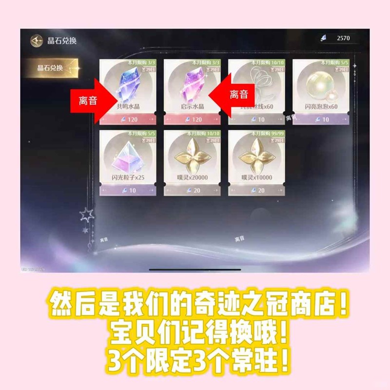 打完的记得检查奇迹之冠巅峰赛的商城!6水晶!记得兑换!双倍闪光祝福宝贝们记得打!因为还有双倍经验!记得打三次!