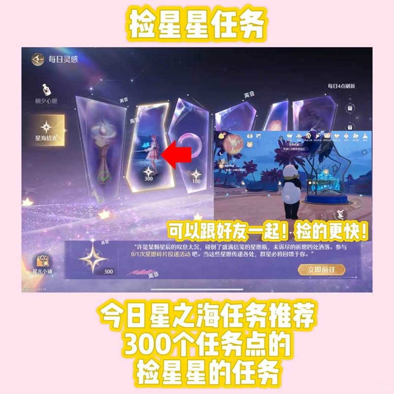 星之海任务推荐今日推荐捡星星任务~今日推荐点亮花蕊任务~