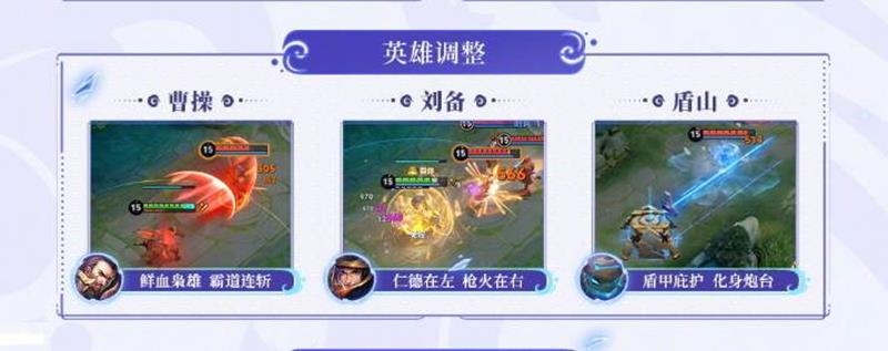 英雄重做盾山:新增附身防御塔和扔石头远程攻击能力,玩法更加多样。刘备:1技能新增爆裂弹,大招护盾更具韧性,散射角减小,射程增加。曹操:大招新增连斩剑气,短时间内可打出高额伤害。周瑜:火区范围扩大,新增爆燃机制,铺火能力显著提升。司马懿:重做方案即将开启共创。刘禅:血条清空时跳出机甲,捡取机甲碎片可召唤机甲,拥有了复活机制。