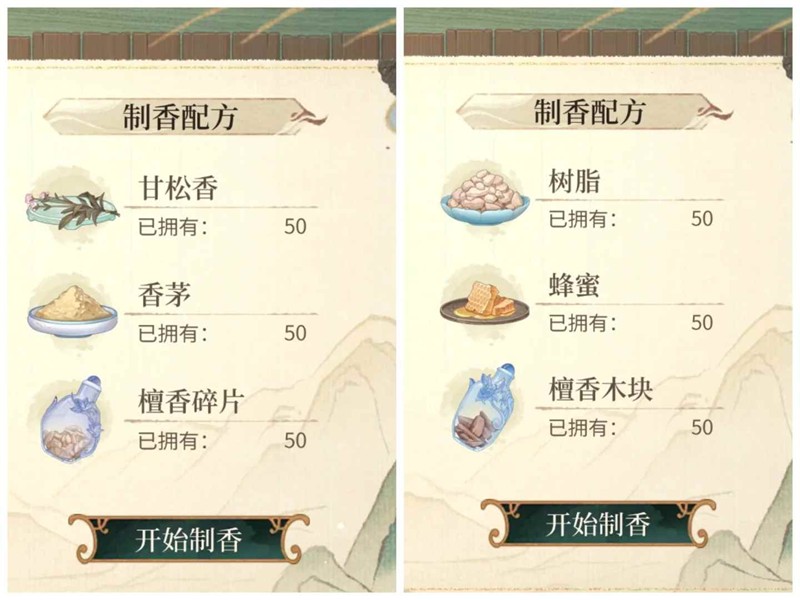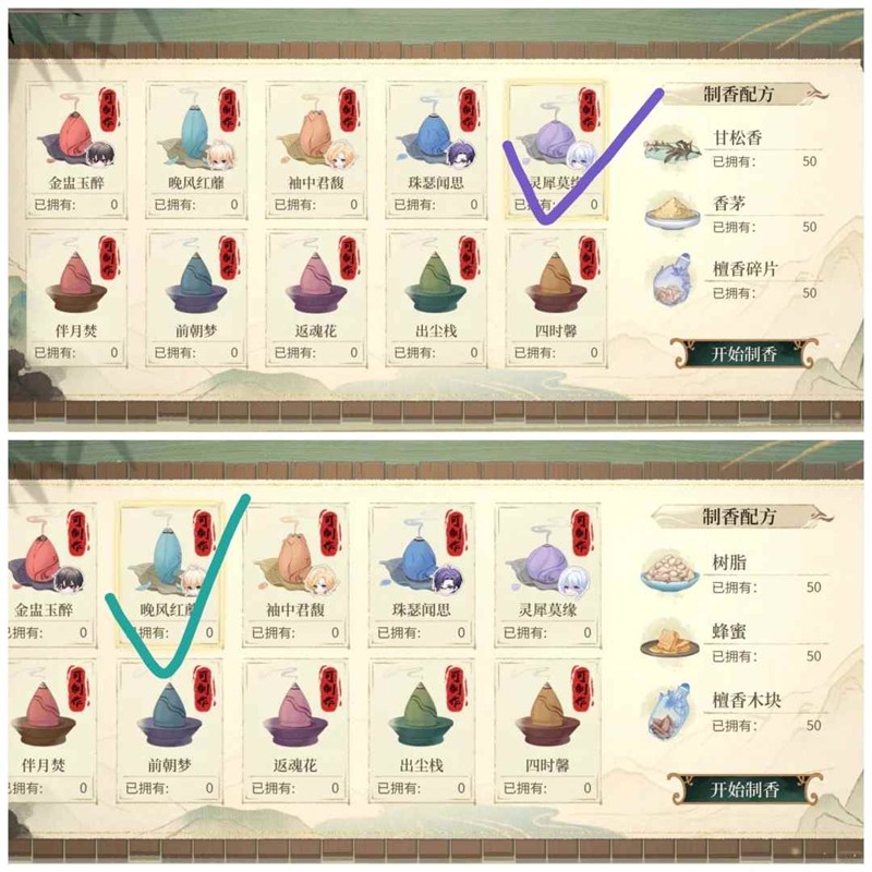 2.材料获得后大家可以寻找制香材料完全不同的两个男主,这样制的香会更多(我素路辰单推,所以选择制取了香料完全不同的路叶)૮₍˶ᵔᵕᵔ˶₎ა