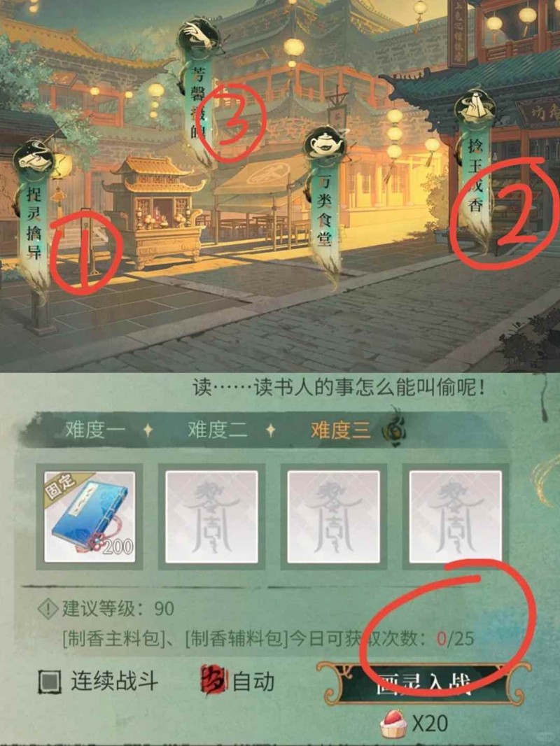 “人间画外”烧香活动复刻啦,想要多拿好感度礼物的小画家可以看过来><1.活动制香烧香流程地点如图2步骤①②③,复刻时期每日有25次制香材料获取的限制(体力多的小画家注意不要一次性清体力)