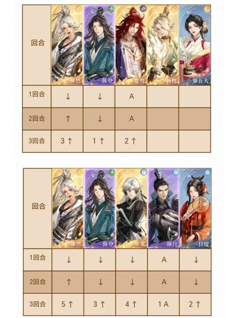 p1:张鲁队、粲队p2:茄队(一般上面就可以,伤害不够用下面但是甘缇升二星套星石p3:茄郃队(以上甘缇可换有命盘的华佗)