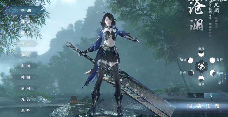沧澜流派为外功输出流派,擅长近程作战,以巨型的“尺阙”为武器,战斗风格大开大合,热情豪迈。该流派具有“狂澜”和“镇海”两种形态,狂澜形态主要增加对敌人造成的伤害,特效为橘红色;镇海形态则为防御形态,主要减少角色自身受到的伤害,特效为蓝色。