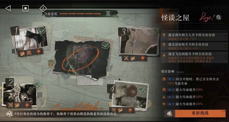 本次助战角色非常强力,约等于白送薪血队和电能队。雨迹追查就是塞梅诺谛卡二带三,诺谛卡固定五号位(消失的主人可以考虑四人队,不要五号位不然会跟塞梅抢术阵)。buff选择方面除了《嫁接》这一关选择保留我方扣血(可以给薪血队增伤),其他都是保留给敌方加血量。