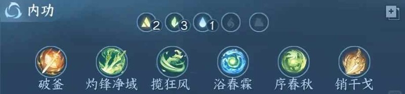 效果:整套搭配可以为全队队友提高1000+的攻击区面板,不要小瞧装备辅助能力哦,人均提升5000秒伤不在话下!内功选择3木3水,【灵犀】+【捍海门】两个内功可以给队友会伤+额外伤害的增益,三个治疗系木内功也保障了奶量,如果追求极致辅助能力可以再把【浴春霖】换成【濯雪】/【望惊川】。既然是辅助套,技能搭配也是必不可少的!群侠选择【逐律流华】全程覆盖的600点首领克制+275元素攻击,破防流/元素流都很香!心眼挂给队伍秒伤最高的大哥,如果习惯手动刷水,可以把心眼换成【猿戏功】上限更高。