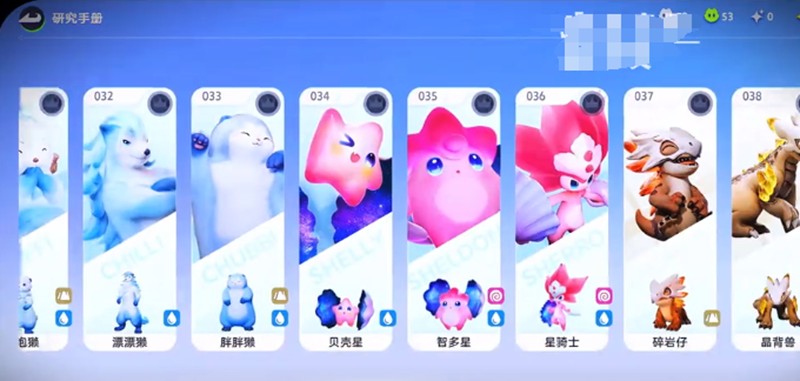 研究手册详细记录了各类伊莫的属性特征,包括水系、草系、火系等不同类别。比如贝壳星这类以海鲜为蓝本的伊莫,不仅拥有浅蓝色的清新外观,还具备独特的生活习性。不同伊莫的活动时间与栖息地各有特点,有些喜欢昼伏夜出,有些则偏好群居生活。