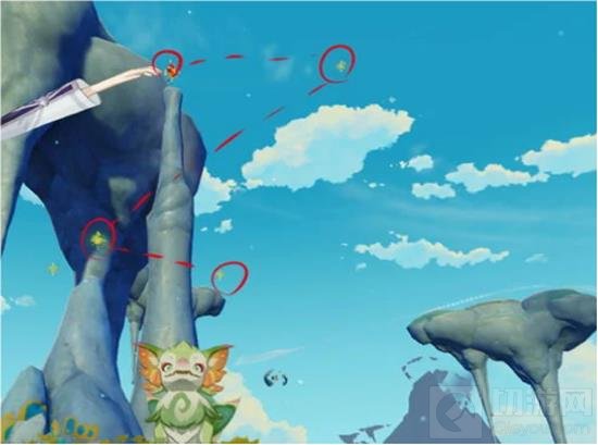 3号火神瞳:在空中地图此处击败风史莱姆并打碎风元素石头,通过风场即可飞起来拾取。