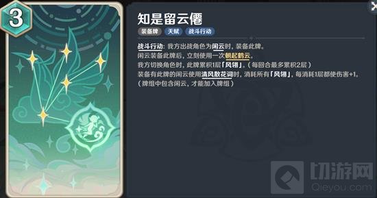 闲云的各项能力简直把“鼓励切换到队友、多用扩散打元素反应”写明面上了。另外,闲云的天赋牌可以增加大招的伤害,也可以因此在辅助能力之外,打核爆流。