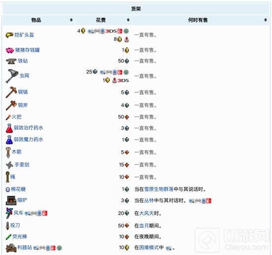 物品销售:商人出售各种物品,包括但不限于武器、防具、药水、建筑材料等。