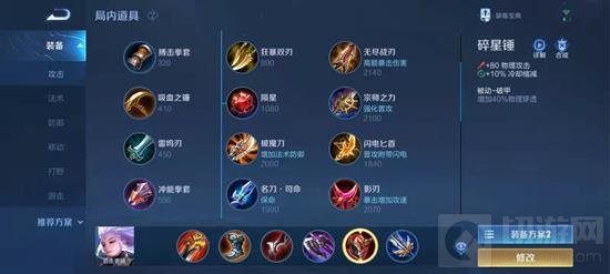 出装顺序:抵抗之靴、泣血之刃、暗影战斧、名刀、碎星锤、破军。