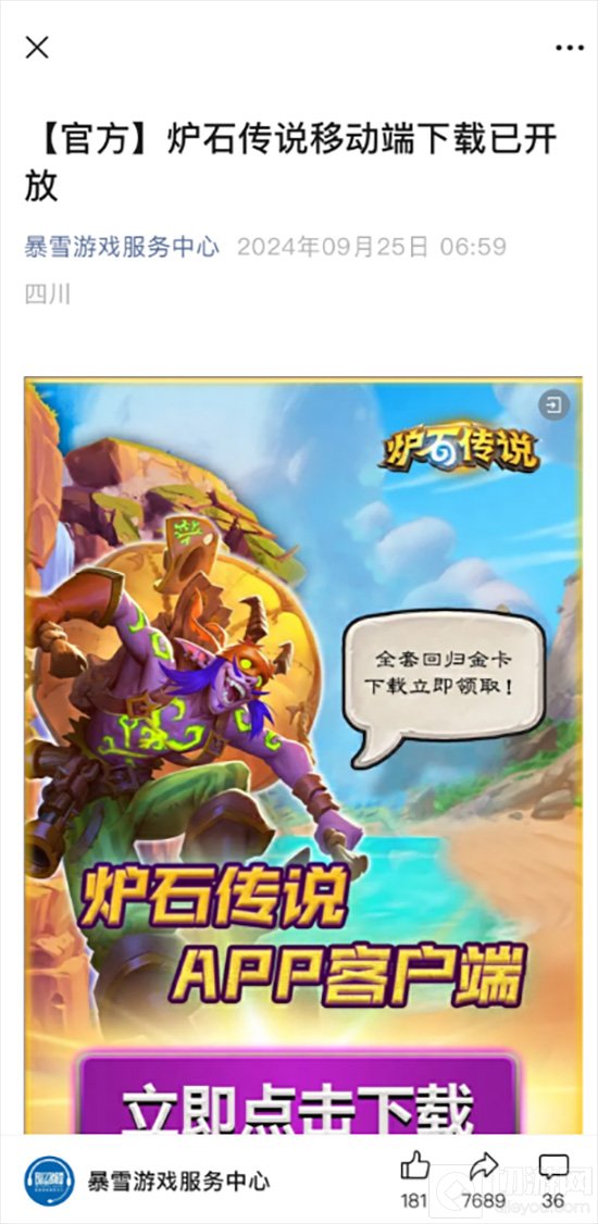 同时暴雪官方公众号“暴雪游戏服务中心”也提供了官方下载链接,需要的小伙伴可以搜索微信公众号获得链接。