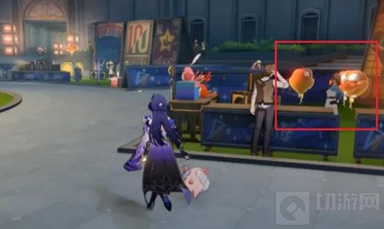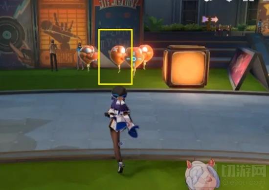 第二处气球距离第一处不远,在舞台正对着的分区站台处。这里有三个气球,其中一个是我们需要打掉的特殊石头老板气球。