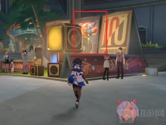第一处气球在折纸大学学院的正中央,我们来到上图所示的舞台旁便可以看到舞台外面绕着一圈共三个气球,推荐用远程角色去打,后续也方便。