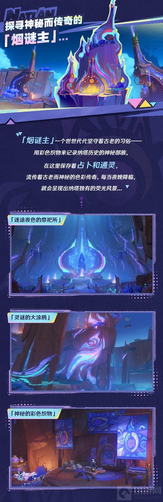 原神官方今天公布了烟谜主部族的相关情报。烟谜主是一个世世代代坚守古老习俗的神秘部族,他们用彩色织物记录纳塔的历史,保存着占卜和通灵的古老传统。每当夜幕降临,这里就会呈现出纳塔独有的荧光风景,令人叹为观止。下面我们一起来看看烟谜主部族的相关信息吧!