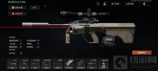 AUG突击步枪可改装项不多,只有瞄具、战术配件和枪口三处。在进行改装时,可以考虑将默认瞄具拆下替换成其它倍率更高的瞄具,同时加装一个镭指加强腰射,最后再加装一个消音器即可完成满改。