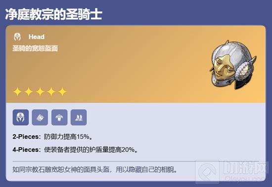 可以选择「净庭教宗的圣骑士」两件套搭配「停转的萨尔索图」或「无主荒星茨冈尼亚」两件套作为替代,适合在追击和削韧队伍中使用。