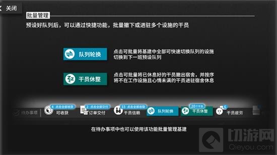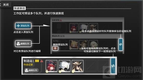 手动操作模式中,预设编辑队列和选择队列换班功能大大减少了玩家每次寻找干员的工作量。玩家只需编辑一次排班,之后直接选择要换班的队列即可。
