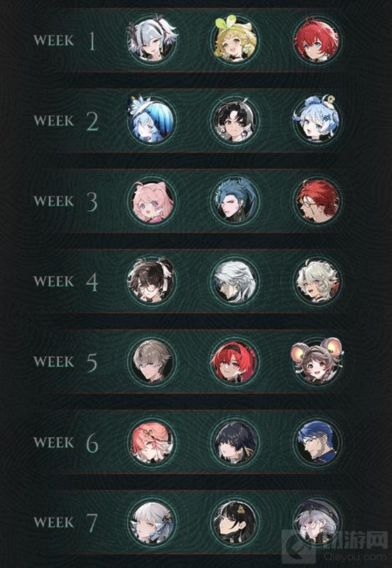 在难度IV~难度VI的挑战中,将分周提供不同的共鸣者试用,让玩家体验不同的战斗风格和策略。具体安排如下所示:
