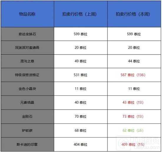 大部分材料:由于新版本的到来,大部分材料价格仍在上涨。这些材料包括但不限于奇迹变换石、装备品级调整箱、深渊派对邀请函、金色小晶体等。