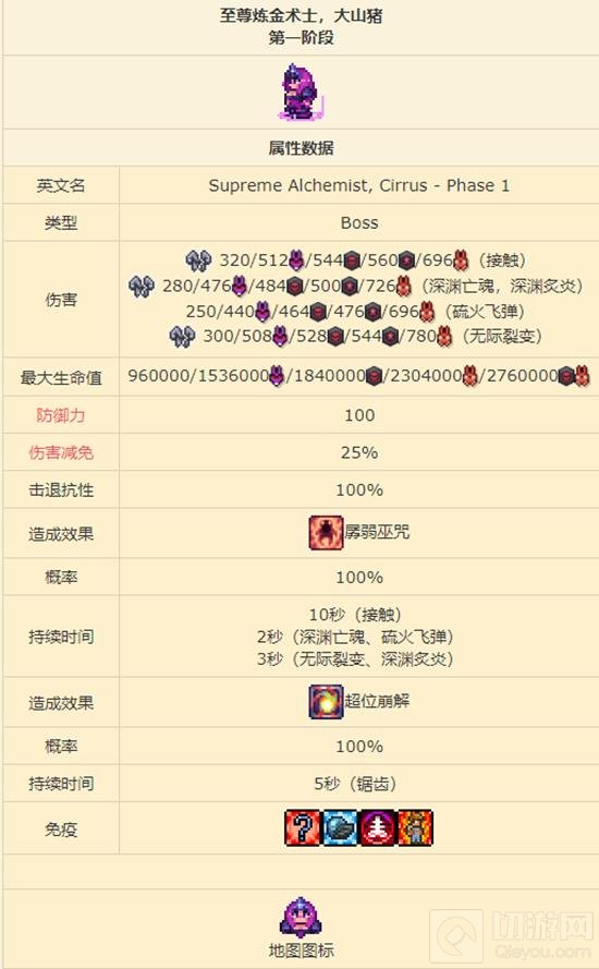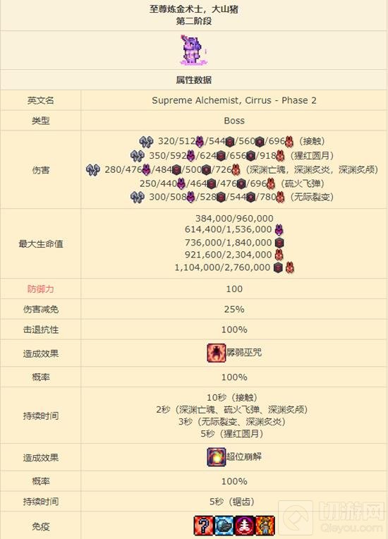接触伤害:在不使用光子撕裂者进行弹幕炼狱的阶段,或者当大山猪的生命值降至1%时,它无法对玩家造成接触伤害。