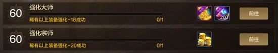 此外,角色成就中还包括强化稀有以上装备的成就,可利用初始之息来实现。由于是1级装备,每次强化的消耗很小,甚至高级强化每次也只需1个炉岩炭,可通过强化这些装备来完成“强化宗师”成就。