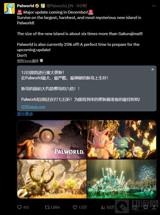 幻兽帕鲁宣布12月更新 将推出比樱岛还大六倍的岛屿