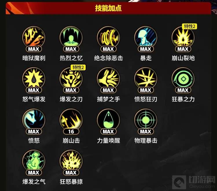 今天带来的是DNF手游65海上列车版本狂战士的职业百科。狂战士是为了获得强大力量而忍受随时反噬的狂气之力的鬼剑士,主打物理输出,本攻略将会详细带领大家了解狂战士的各项攻略,一起来看看吧。 技能加点 装