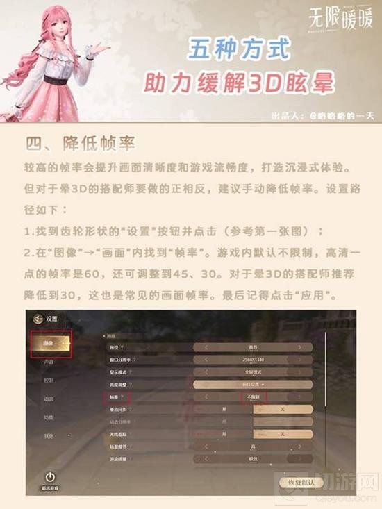 降低游戏的帧率可以减少画面的流畅度,有助于减轻晕3D的症状。