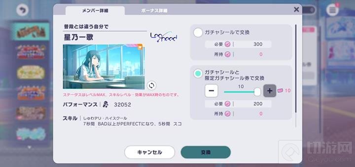 同时我们也能看到一种是兑换粉色或者绿色的票券。通常粉色票券的兑换处,旁边的角色卡是限定卡(右上角有粉色的限定标志)。而绿色票券的兑换处,旁边的角色卡是常驻卡。