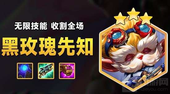 黑玫体系:包括黑玫先知黑默丁格、黑玫赌卡西奥佩娅与黑玫海克斯,属于纯法系九五阵容,大后期黑默丁格、玛尔扎哈、乐芙兰3个棋子选2个充当C位,输出强度非常高,前二率非常高。