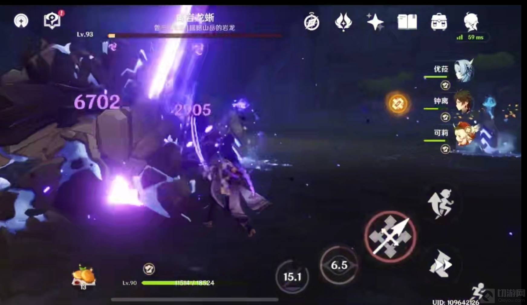 2、考虑到古岩龙蜥的伤害很高,队伍中最好带一个奶妈,比如琴/七七这种奶量较大的,防止被摸一下暴毙。可莉/迪卢克这种近距离平砍类型的主C不推荐带,用脱手技能打伤害并且风筝走位最佳。