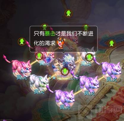 怪物每回合都会往前移动一个身位(第一排会移到最后一排),因为不同法阵的增益,会给我们带来一定的干扰。而怪物的暴击率较高,实战中往往会有老虎成功进化,导致挑战难度提升。